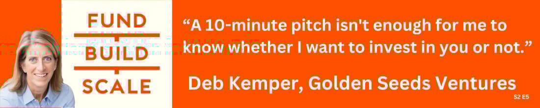 For founders and teams starting up outside major tech hubs, Deb provided practical advice for building networks with investors and generating positive attention. We also talked about Golden Seeds’ assessment and due diligence process and what she looks for in a pitch.